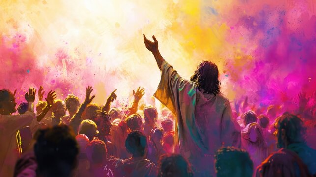 Jesus or evangelist preaching to a multitude of people. Generative AI.