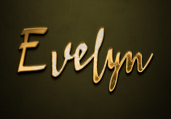 Old gold text effect of name Evelyn with 3D glossy style Mockup.