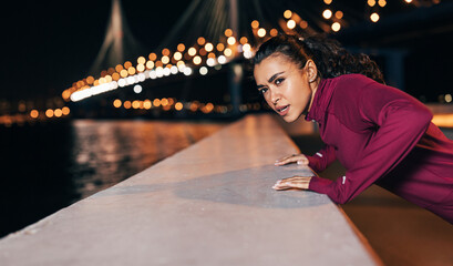 Women training in city street at night and athlete exercise running. Sports fitness runners, health motivation race workout road energy together cardio outdoor dark sprint practice for olympics