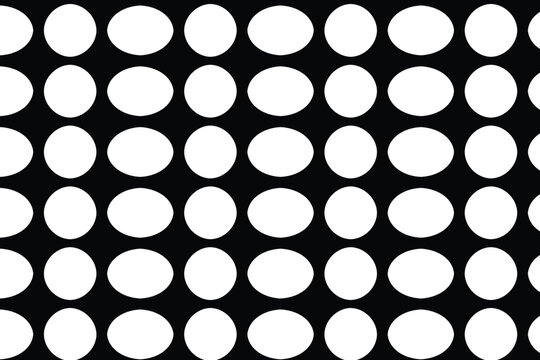 A black and white pattern of evenly spaced white circles on a black background
