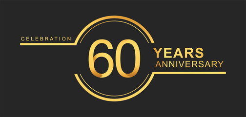 60th years anniversary golden and silver color with circle ring isolated on black background for anniversary celebration event