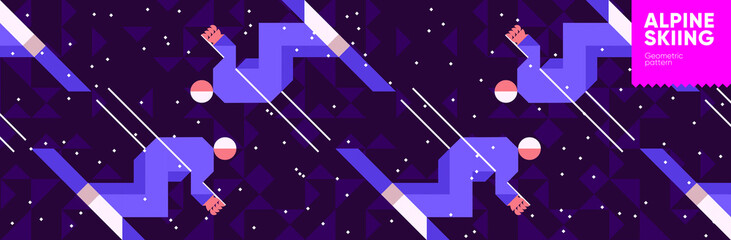 Vector illustration. Pattern of skiers, downhill skiing. Abstract, background patterns, triangular mosaics, stylized polygonal images, geometric backgrounds, large width.