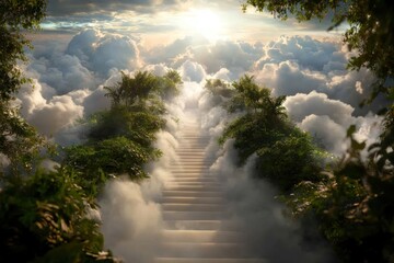 Path to eternal bliss: The road leading to heavenly paradise, representing religious concept of life after death, soul embarks on a journey toward immortality, divine, everlasting sanctuary.
