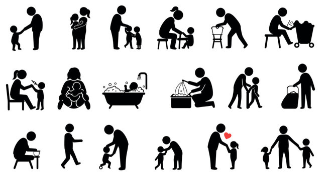 Set of black silhouettes illustrating various everyday life symbols and activities