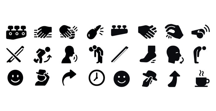 Collection of walking and standing people silhouettes showing various casual poses, gestures, and movements, including waving, sitting, holding bags, and everyday activities