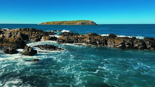Aerial view of seascape along the vast beach on the South Coast during summer