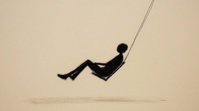 Minimalist Illustration of a Solitary Figure on a Swing, Capturing Themes of Reflection and Contemplation in a Simple Yet Evocative Design