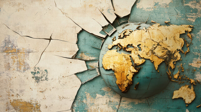 Globe with visible continents appears isolated against an orange backdrop, evoking sense of global awareness and environmental concern