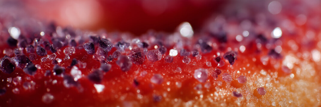 A macro shot revealing the glistening details of sugary sprinkles atop a dessert, emphasizing a vibrant array of colors and textures that evoke excitement and sweetness.