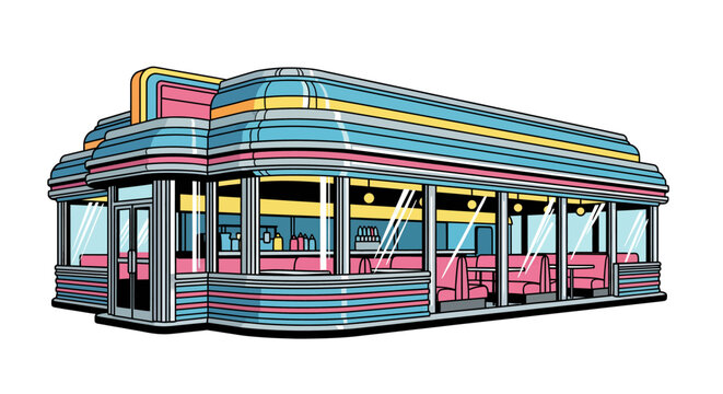 Nostalgic diner illustration evoking vintage American charm and retro vibes, perfect for adding a touch of classic Americana to any design project