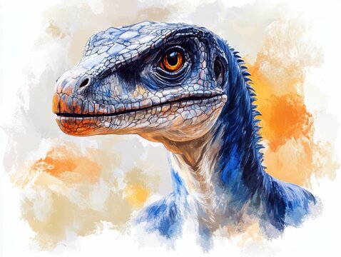 Portrait illustration of a Velociraptor its sleek form and sharp claws evoking a sense of wonder and excitement