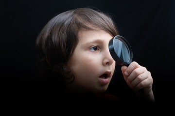 Portrat of a young boy looking through the magnifying glass