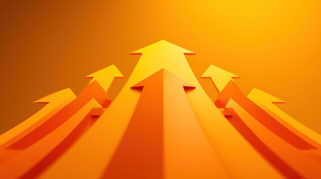 3D Rendered Orange Arrows Pointing Upwards for Business Growth and Progress