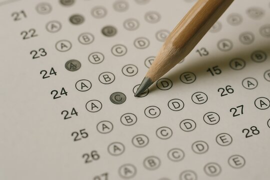Generative AI closeup image of person filling exam test sheet with pencil during academic evaluation or assessment