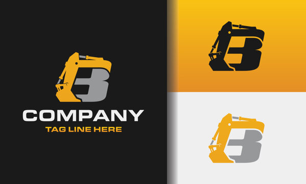 Letter B excavator logo template vector. Heavy equipment logo vector for construction company. Creative excavator illustration for logo template.