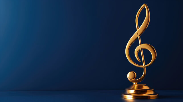 Golden treble clef music award on blue background