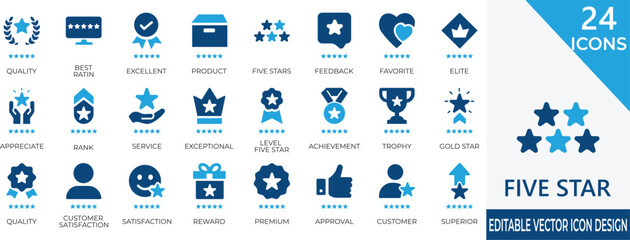 Set of exceptional icon vector. Containing winner, achievement, experience, satisfaction, performance, award, rating, trophy, medal, service, sensational, success. Illustration