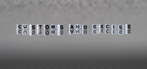 customs and excise word or concept represented by black and white letter cubes on a grey horizon background stretching to infinity