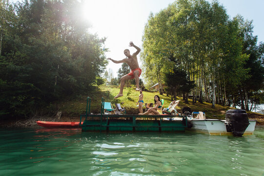 Beach volleyball training camp with enthusiastic players on sunny beach