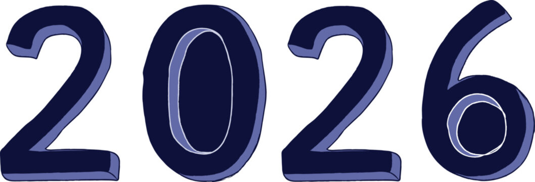 Illustration of the year 2026 in dark blue against a white background symbolizing future plans and aspirations and the excitement and anticipation for upcoming events and milestones