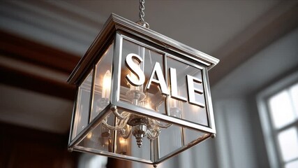 luxury sale sign in high-end boutique, neutral color palette, elegant lighting, premium retail branding