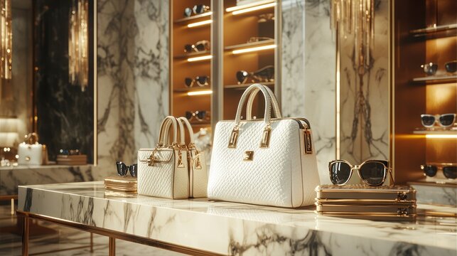 Luxury Handbags and Sunglasses Display in an Upscale Boutique Store