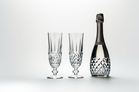 A sleek silver champagne bottle with two matching crystal flutes, ideal for upscale events or elegant gatherings.