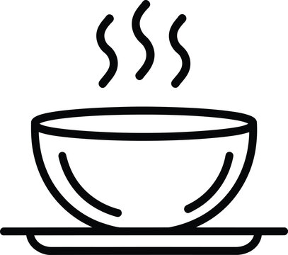 Simple line art icon illustrating a hot bowl of soup with rising steam on a plate