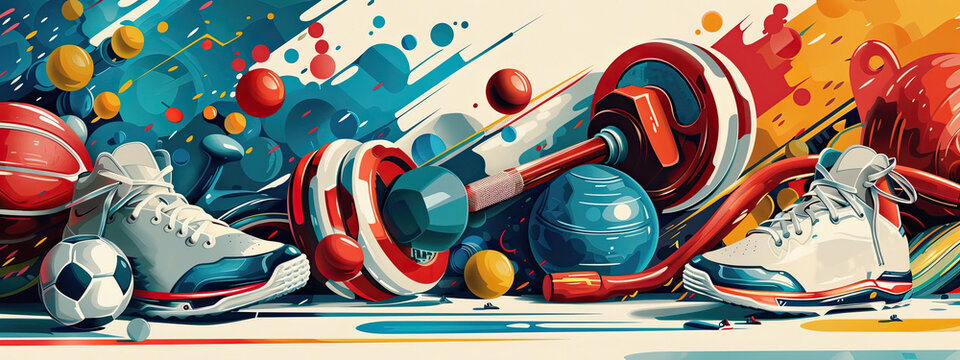 Abstract watercolor gym art banner illustration, isolated on white, AI generated.