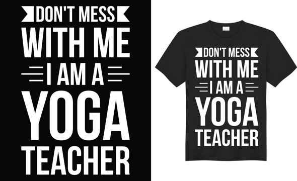 Don't mess with me i am a yoga teacher typography vector t-shirt Design. Perfect for print items and bag, poster, sticker, template. Handwritten vector illustration. Isolated on black background.