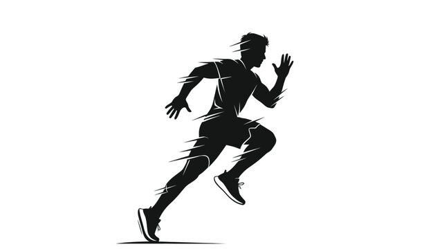 A dynamic silhouette of a man running with motion lines white with athletics on whit background