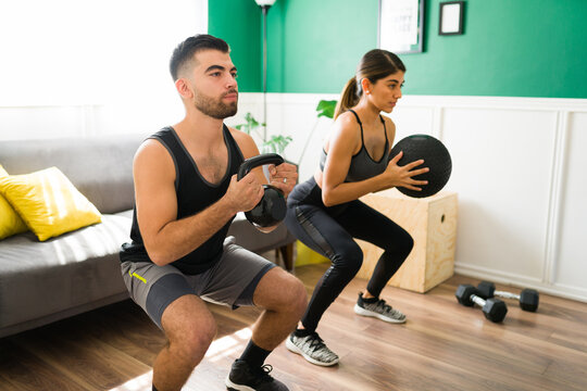 Sporty workout partners exercising