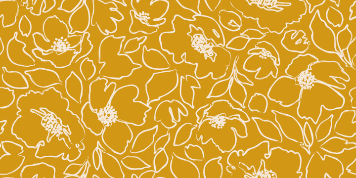 Set of hand drawn flowers, seamless patterns with floral for fabric, textiles, clothing, wrapping paper, cover, banner, interior decor, abstract backgrounds.