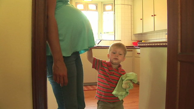 Pregnant woman feeling happy at home while taking care of her child. The young expecting mother holding baby in pregnant belly. Maternity prenatal care and woman pregnancy concept. Stroke tummy
