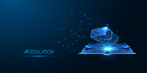 Augmented reality AR, immersive learning, future education concept with open book and VR glasses