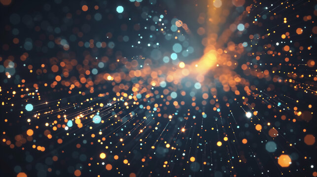 Streams of neutrino particles traverse a dark expanse, creating an abstract display of light and energy