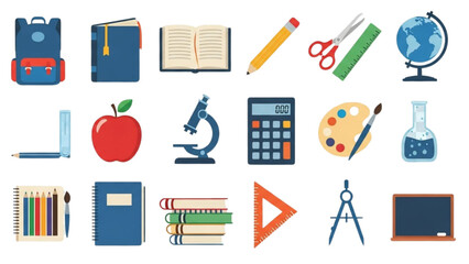 Collection of educational icons representing various school subjects and activities