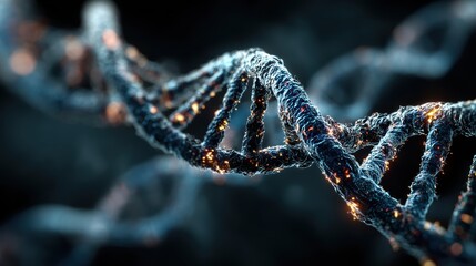 3D animation of blue chromosome DNA with flickering light, exploring medical genetics and technology in the science field