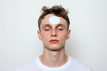Man With Sticker On Her Forehead On White Background