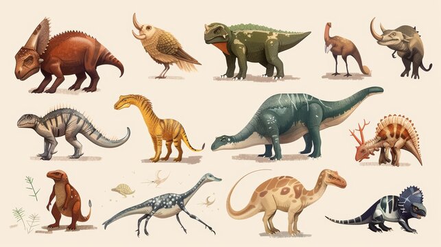 Collection of extinct animals with names. List of mammals, birds and sea creatures that ceased to exist. animals. Illustrations