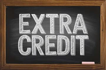 Chalkboard with wooden frame displays "EXTRA CREDIT" in hand-drawn style, suggesting academic achievement or reward