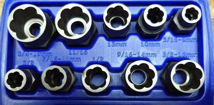 bolt lug nut extractor socket set for loosening and removing stubborn threaded fasteners