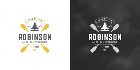 Rafting logo emblem vector illustration extreme adventure expedition paddles silhouette for shirt or print stamp