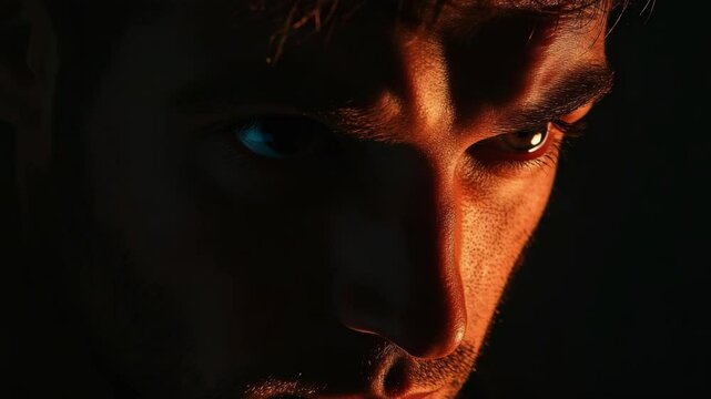 Close-up portrait of stylish man with eyeglasses, beard. Confident, serious expression, exuding professionalism, modern fashion sense. Man detailed facial features, sharp focus on eyes, glasses