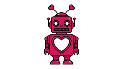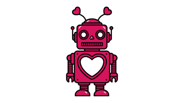 Animated Lovebot: A whimsical lovebot illustration with heart-shaped antennae and a heart-shaped chest, exuding charm and affection, radiates joy and symbolizes connection.