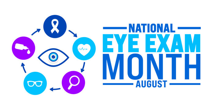 National Eye Exam Month is observed every year in August. Holiday concept. Template for background, banner, card, poster, placard, design template with unique shapes with standard color.