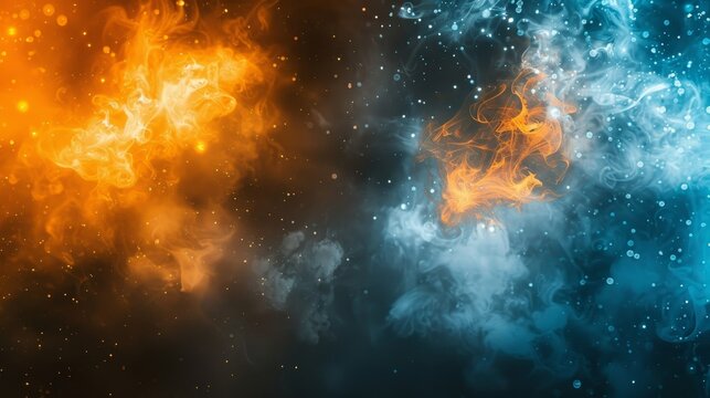 Vibrant orange and blue glowing abstract shape on dark grainy texture for eye catching design