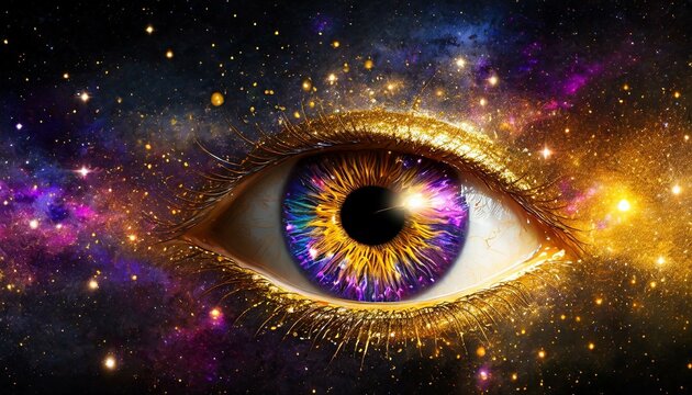 Seeing eye. Art composition for art gallery, wall decoration or interior design. Geometrical background. Cover design template. 3d vector patter for brochure, poster, presentation, flyer or banner.