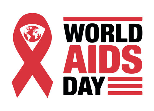 World AIDS Day logo with red ribbon and globe inside an eye symbol.