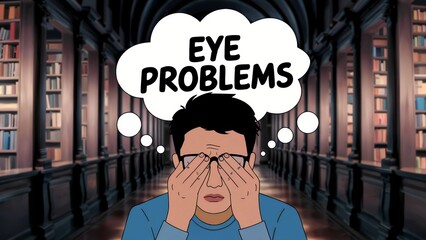 Poor young man has issues with vision, rubbing his eyes